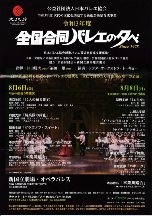 2021年8月6日、8月8日に、文化庁及び日本バレエ協会主催の全国合同バレエの夕べが新国立劇場オペラパレスにて行われました。