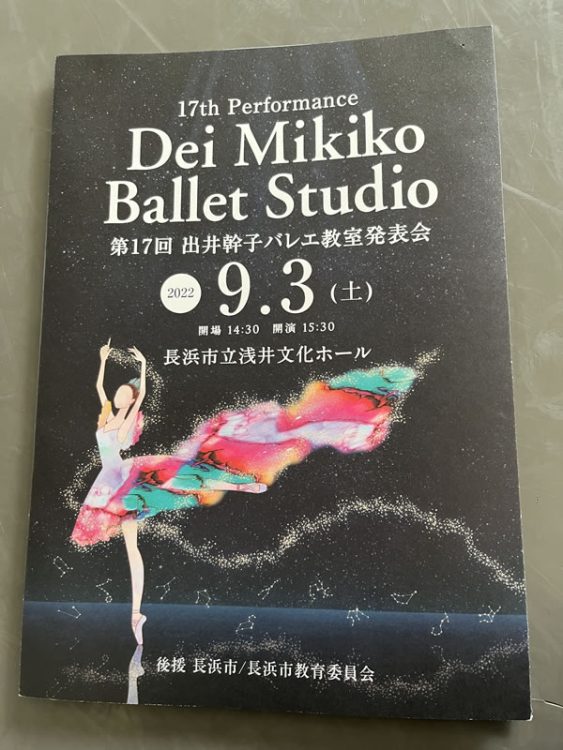 明日9月3日(土)、出井幹子バレエスタジオ第17回発表会で山本庸督さんとパ・ド・ドゥを踊らせていただきます。