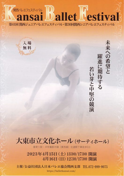 4月15日(土)、16日(日)、(公・社)日本バレエ協会関西支部主催のジュニア・シニアバレエフェスティバルが行われました。